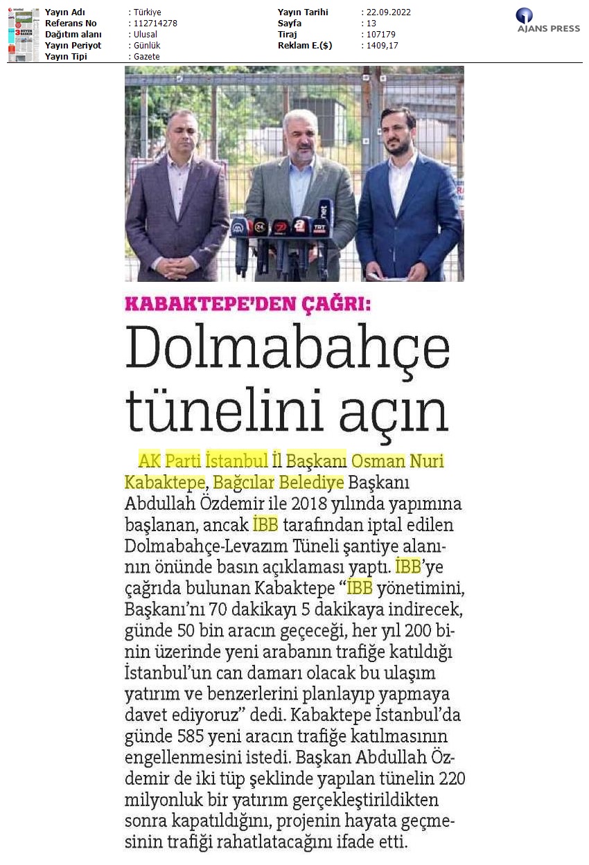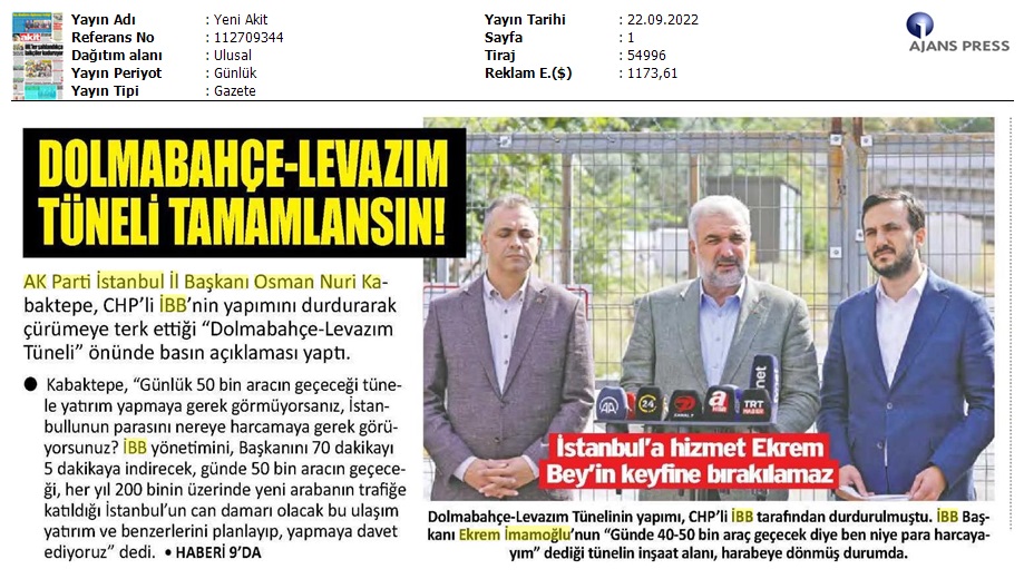 İl Başkanımızdan Levazım Tüneli Açıklaması- Yeni Akit